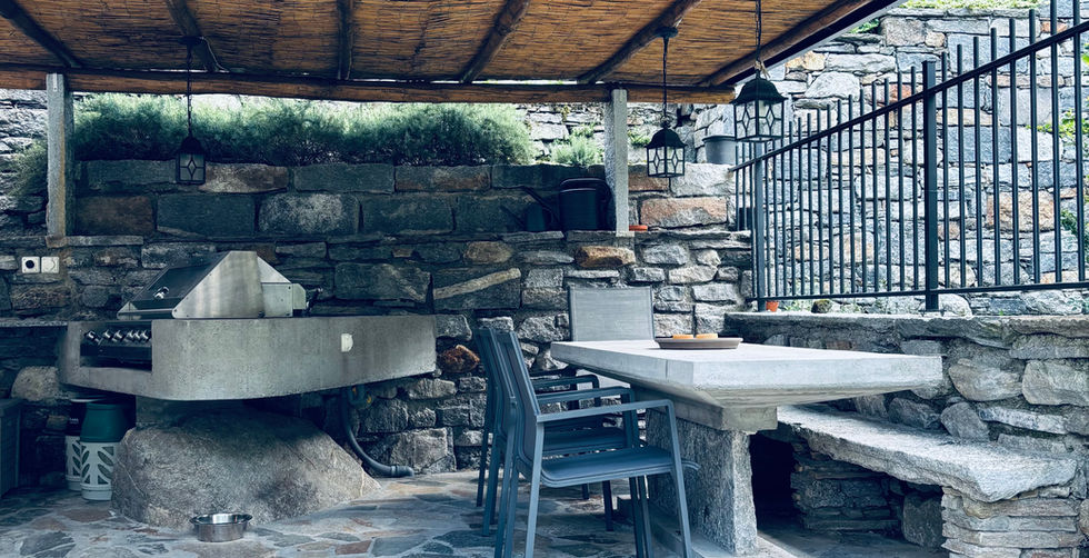 Giardino privato con prato curato, moderno grill esterno e una raffinata pergola per cene e grigliate in compagnia